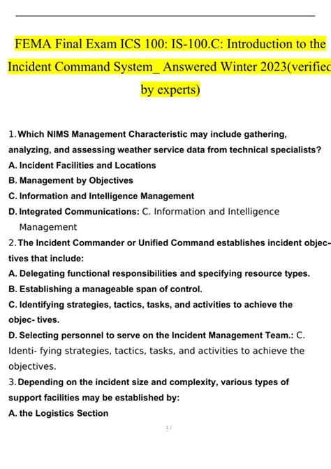 Read Online Fema Test Answers Ics 100 Doc By Click Button. Fema Test Answers Ics 100 it’s easy to recommend a new book category such as Novel, journal, comic, magazin, ect. You see it and you just know that the designer is also an author and understands the challenges involved with having a good book. You can easy klick for detailing book and you can read it online, even you can download it