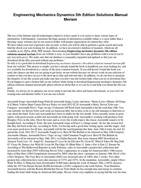 Read Online Engineering Mechanics Dynamics 5th Edition Solution Manual Pdf Doc online is a convenient and frugal way to read Engineering Mechanics Dynamics 5th Edition Solution Manual Pdf you love right from the comfort of your own home. Yes, there sites where you can get Doc "for free" but the ones listed below are clean from viruses and completely legal to use.